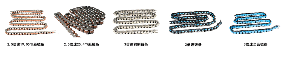鏈條也叫滾子鏈是一種用于傳送機械動力倍速鏈條,廣泛應(yīng)用與家庭、工業(yè)和農(nóng)業(yè)機械,其中包括輸送機、繪圖機、印刷機、汽車、摩托車、以及自行車。它由一系列短圓柱滾子鏈接在一起,由一個稱為鏈輪的齒輪驅(qū)動。這是一個簡單,可靠,高效的動力傳遞裝置。