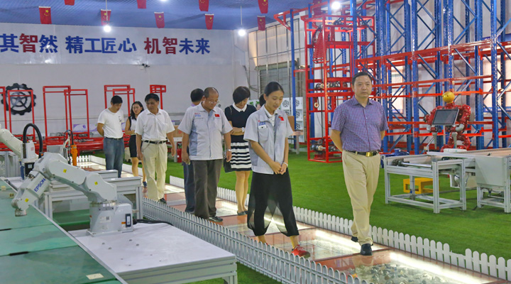 楊副院長一行在董事長鐘輝的陪同下參觀了企業(yè)的智能生產(chǎn)線演示、匯興精工智造工業(yè)4.0體驗館、工程研發(fā)部信息化組等部門,雙方表示今后要加強對接,細化合作內(nèi)容,創(chuàng)造更多的社會價值。在參觀過程中,董事長鐘輝向一行成員介紹了公司的發(fā)展歷程、經(jīng)營業(yè)務及取得成就,他表示作為掛牌上市公司,始終重視企業(yè)內(nèi)部的人才培養(yǎng)和技術革新,需要校企之間密切合作,并在不同的專業(yè)和領域搭建多種平臺,促進校企間的優(yōu)勢互補和良性互動。