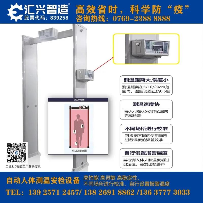匯興智造人體測溫安檢門將集紅外測溫和金屬檢測為一體化,可對通過安檢門的人員進(jìn)行溫度測試,如若超過安全溫度閾值將聯(lián)動安檢門聲光報警,有效對人員進(jìn)行篩查并建立首道防線。